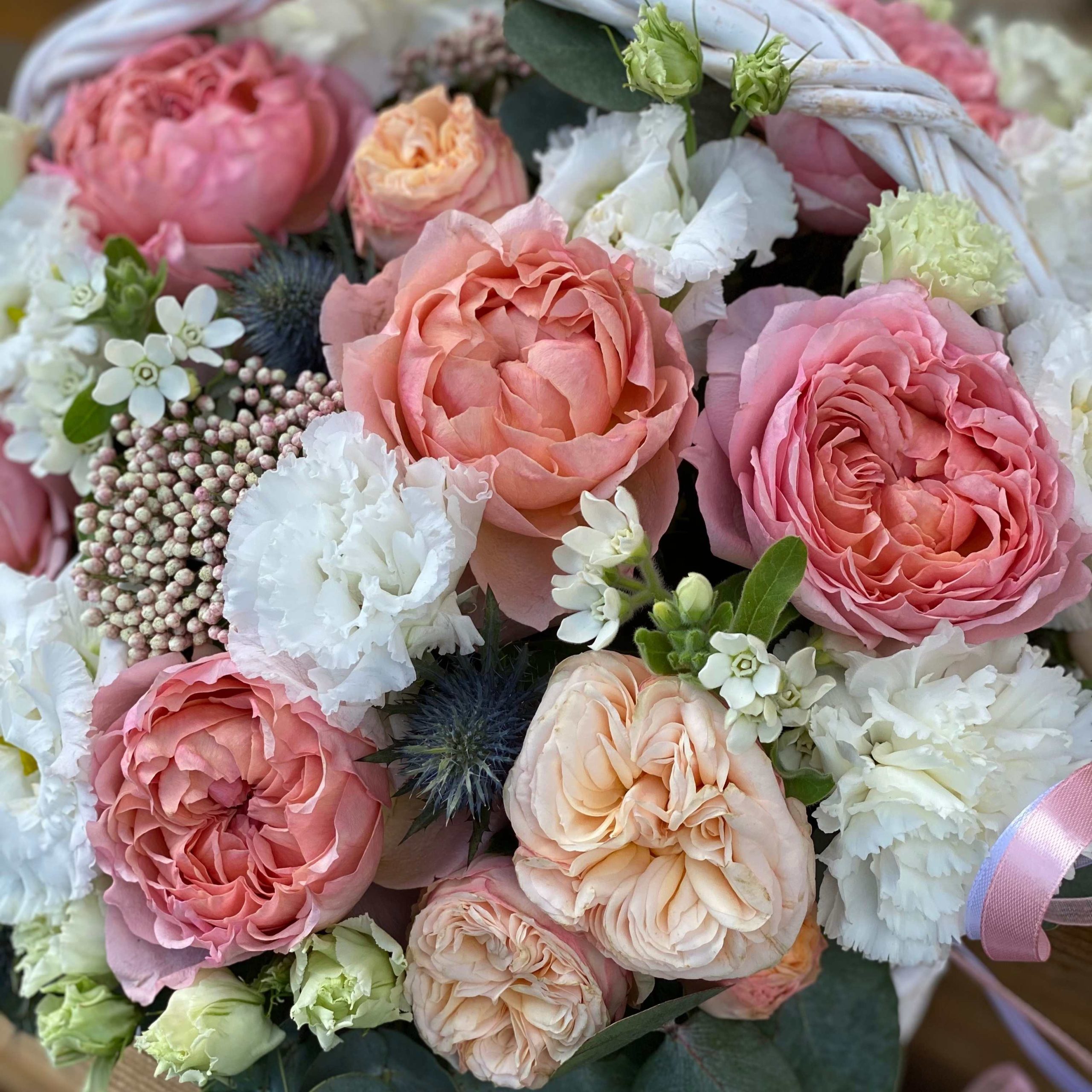 Альстромерии, Гортензии, Кустовые розы, Лизиантусы, Розы, Хризантемы