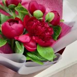 Пион – 5 шт.Лента атласная – 2 шт.Упаковка дизайнерская – 3 шт.