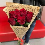 розы эквадор (60 см) – 9 шт.Крафт – 1 шт.Лента атласная – 1 шт.