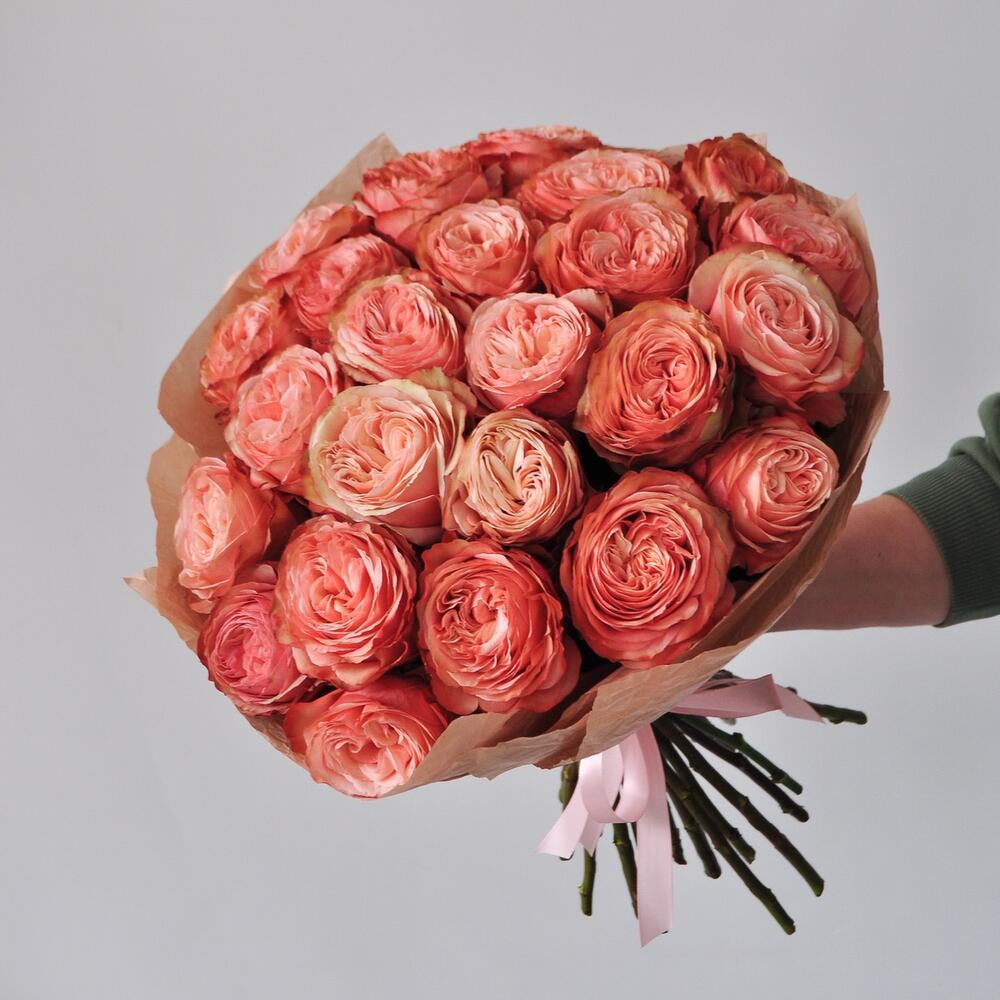 Лента атласная – 1 шт.Упаковка дизайнерская – 2 шт.роза кахала пионовидная 50 см – 25 шт.