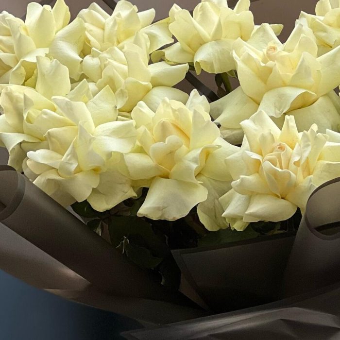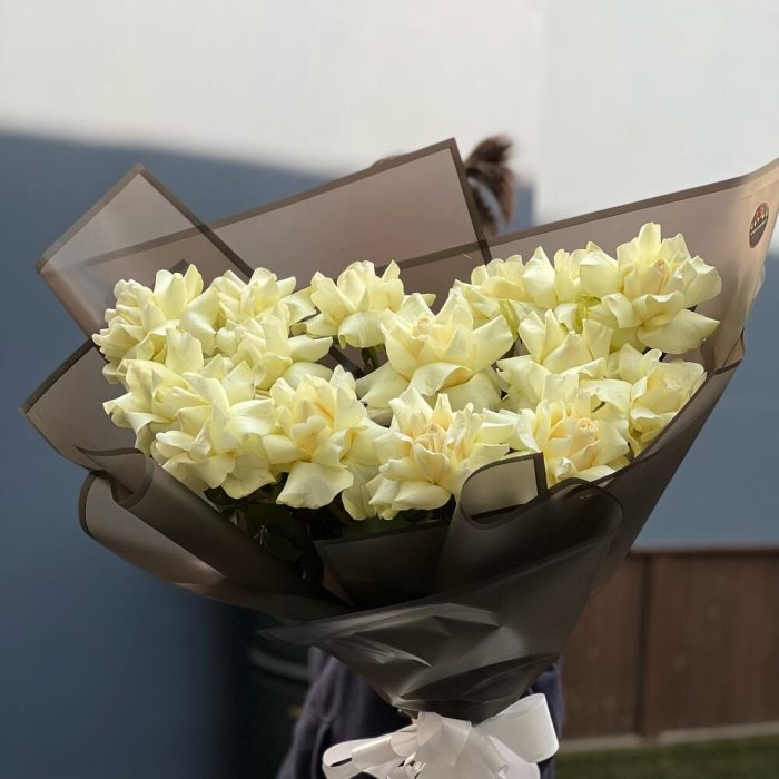 Роскошный букет из белоснежных роз Black edition